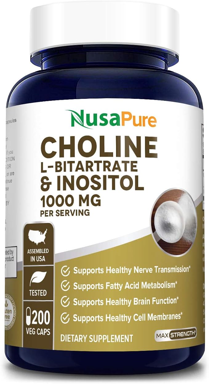 Amazon Com Choline Inositol 1000mg 200 Veggie Caps 100 Vegetarian Non Gmo Gluten Free Health Household